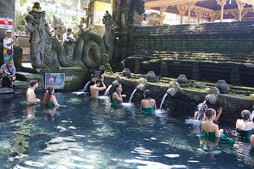 女神ウィジャダリの沐浴場も1954年に発見された遺跡で、元は7人の石像女神のへそから水が噴出し、下のプールに溜まるようになっていましたが、中心の女神は地震で壊れて撤去され、現在6人になっています。
